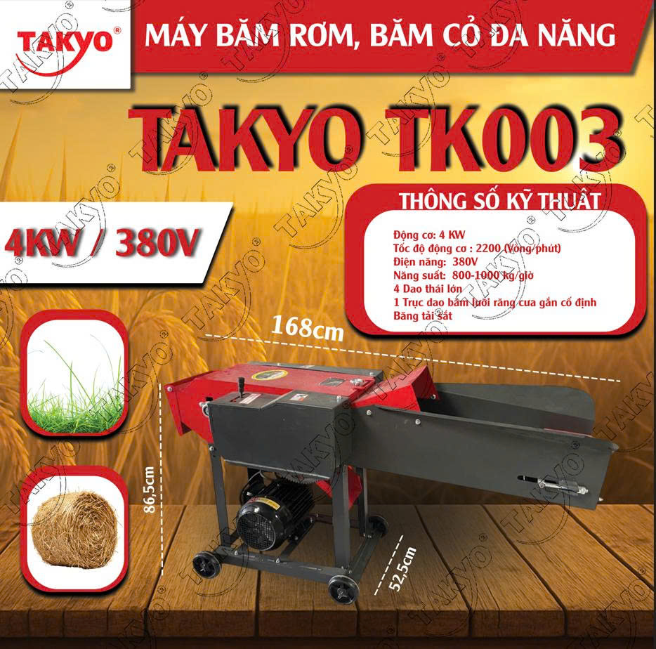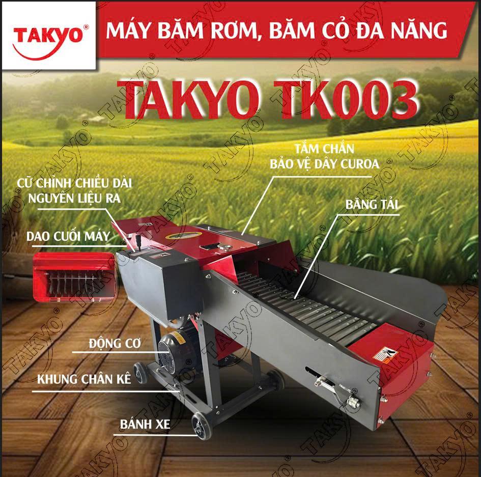 MÁY BĂM RƠM, BĂM CỎ ĐA NĂNG NĂNG SUẤT CAO CÓ BĂNG TẢI TAKYO TK003 3 PHA 4KW