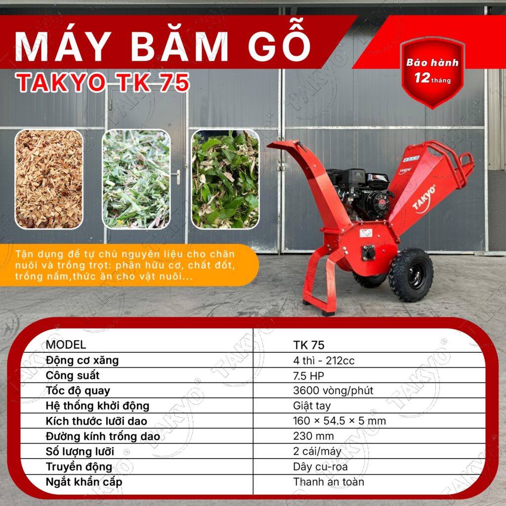 Ngoài ra MÁY BĂM GỖ, NGHIỀN CÀNH CÂY DỌN VƯỜN CHẠY XĂNG TAKYO TK 75